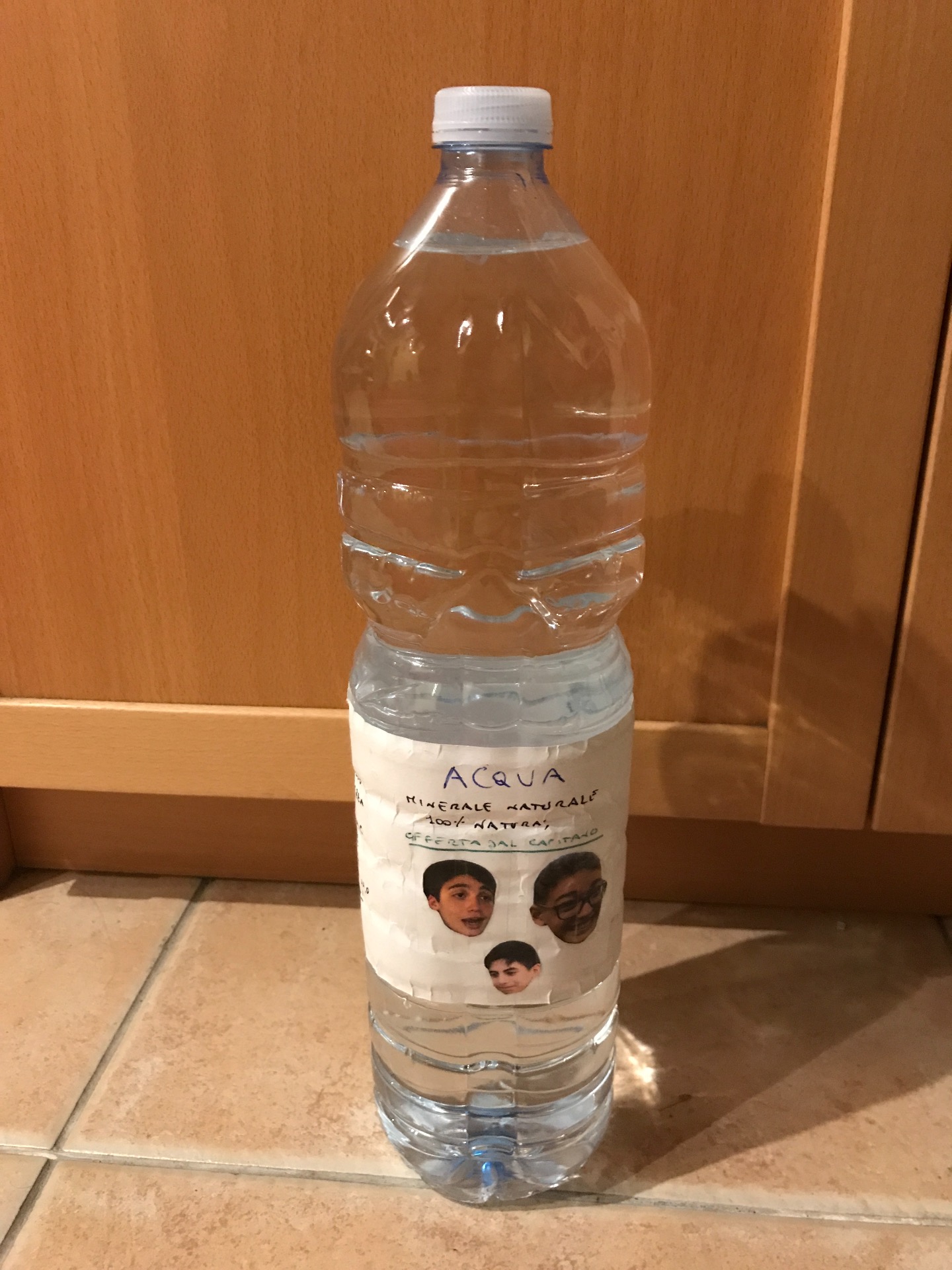 D'estate è molto importante bere... allora utilizza questa bottiglia speciale con una etichetta dove sono elencate le istruzioni e dove si possono vedere le facce della Team Team Production! Acqua oligominerale naturale, 100% natura! Offerta e sponsorizzata esclusivamente dal Capitano! Proviene da una sorgente pura, ha poco residuo fisso e tanta durezza e sodio. Made esclusivamente in Italy. Prodotto e venduto assolutamente in Italia. Sorgenti eccezionali, microbiologicamente pura e scientificamente testata. Conservare lontano da fonti di calore in quanto la plastica è veramente molto delicata! Il tappo è ben sigillato e la bottiglia è pronta all'uso! Bevete mi raccomando! Sono solo 1.5 litri di acqua purissima!